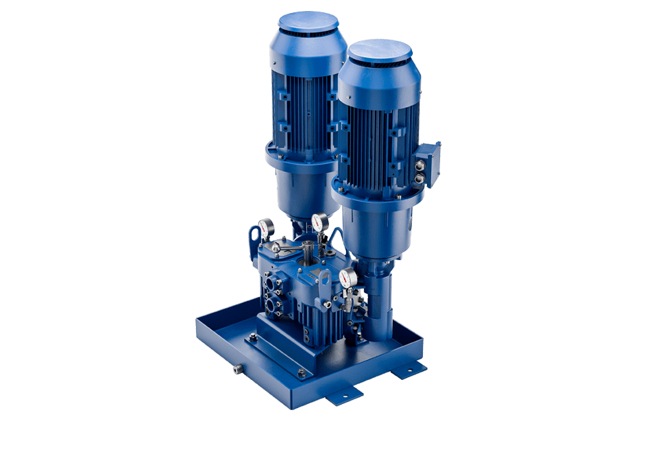 Wenn eine zweite Schraubenspindelpumpe notwendig ist, wird schnell klar, dass der Aufwand für Konstruktion, Verrohrung und Steuerung erheblich ist. Zudem ist der Platzbedarf für einen Aufbau aus Einzelkomponenten sehr groß. Eine deutlich wirtschaftlichere Lösung stellen die KRAL Doppelstationen DKC und DLC dar. Je zwei Schraubenspindelpumpen der Baureihe K (bis 16 bar) oder der Baureihe L (bis 63 bar) sind an einem Block angebaut. Der Block integriert alle Funktionen auf kleinstem Raum und ist mit vielen Optionen erhältlich. Und: Die Fördermenge kann verdoppelt werden.